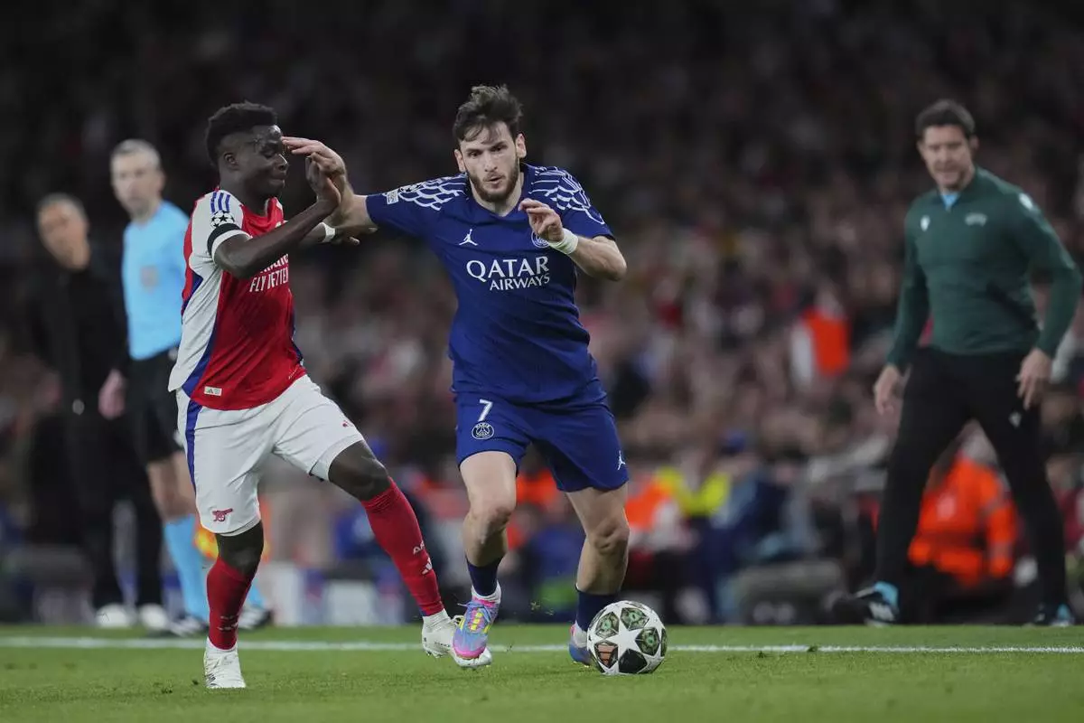 Star player Bukayo Saka was shut down by PSG winger Khvicha Kvaratskhelia, who has a remarkable ability to attack and defend equally well on the left flank.