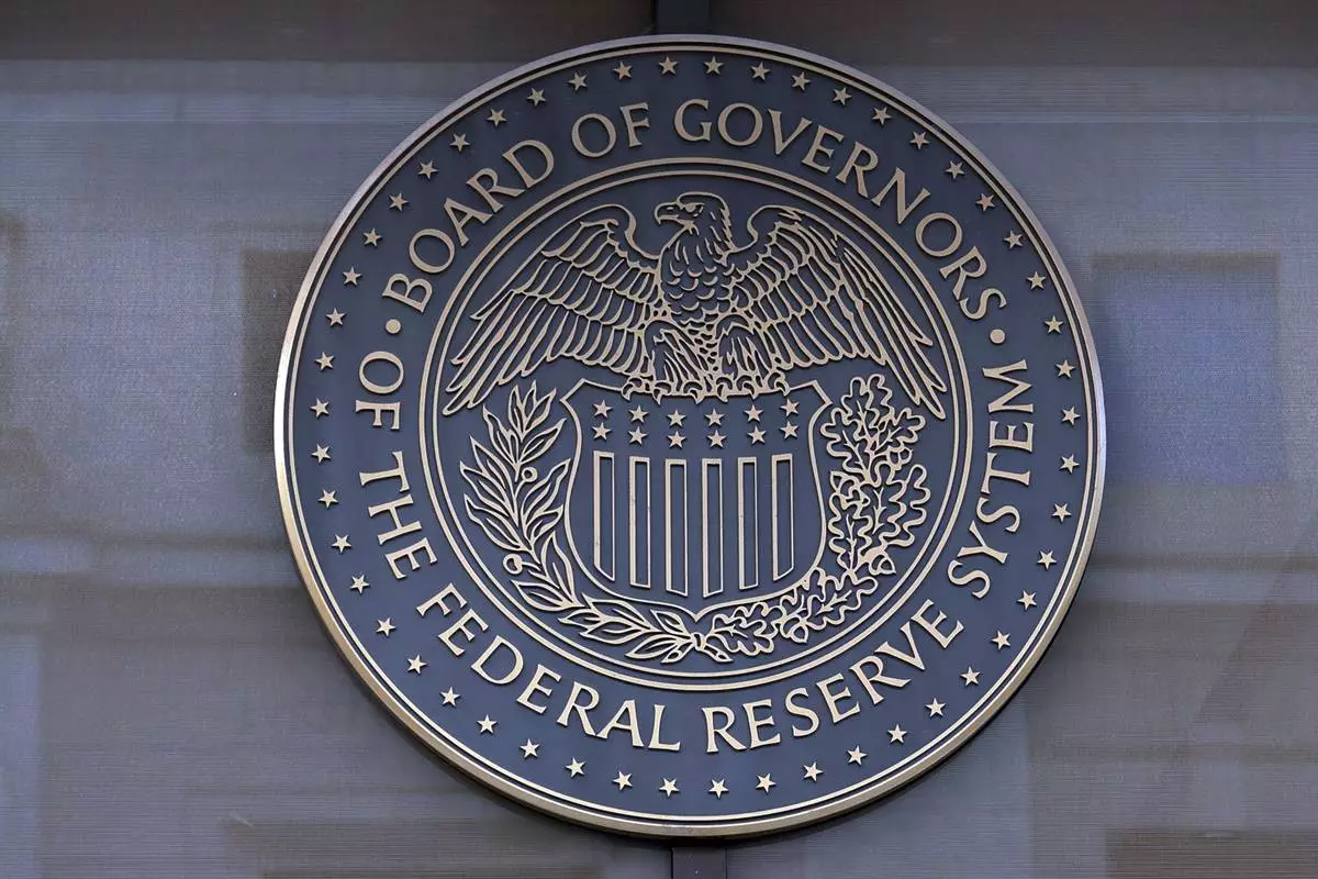 FILE - The seal of the Federal Reserve Board is seen at the Building in Washington, Saturday, Dec. 8, 2024. (AP Photo/Jose Luis Magana)
