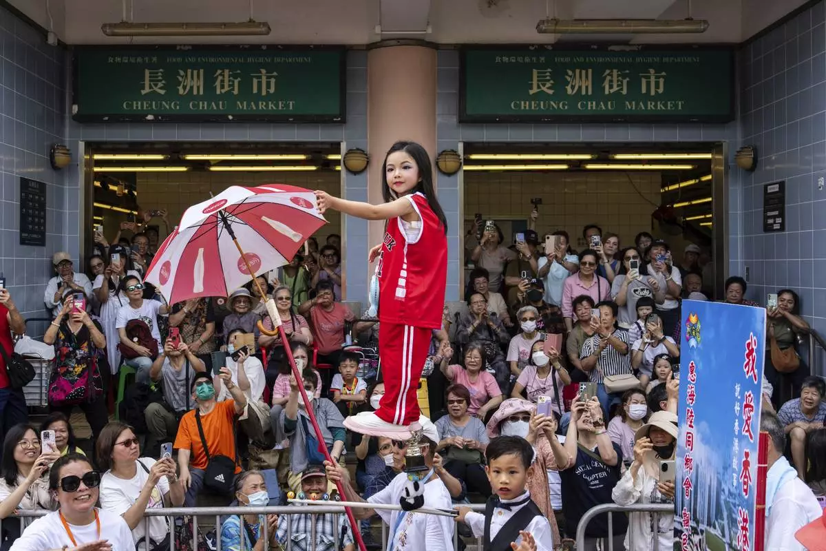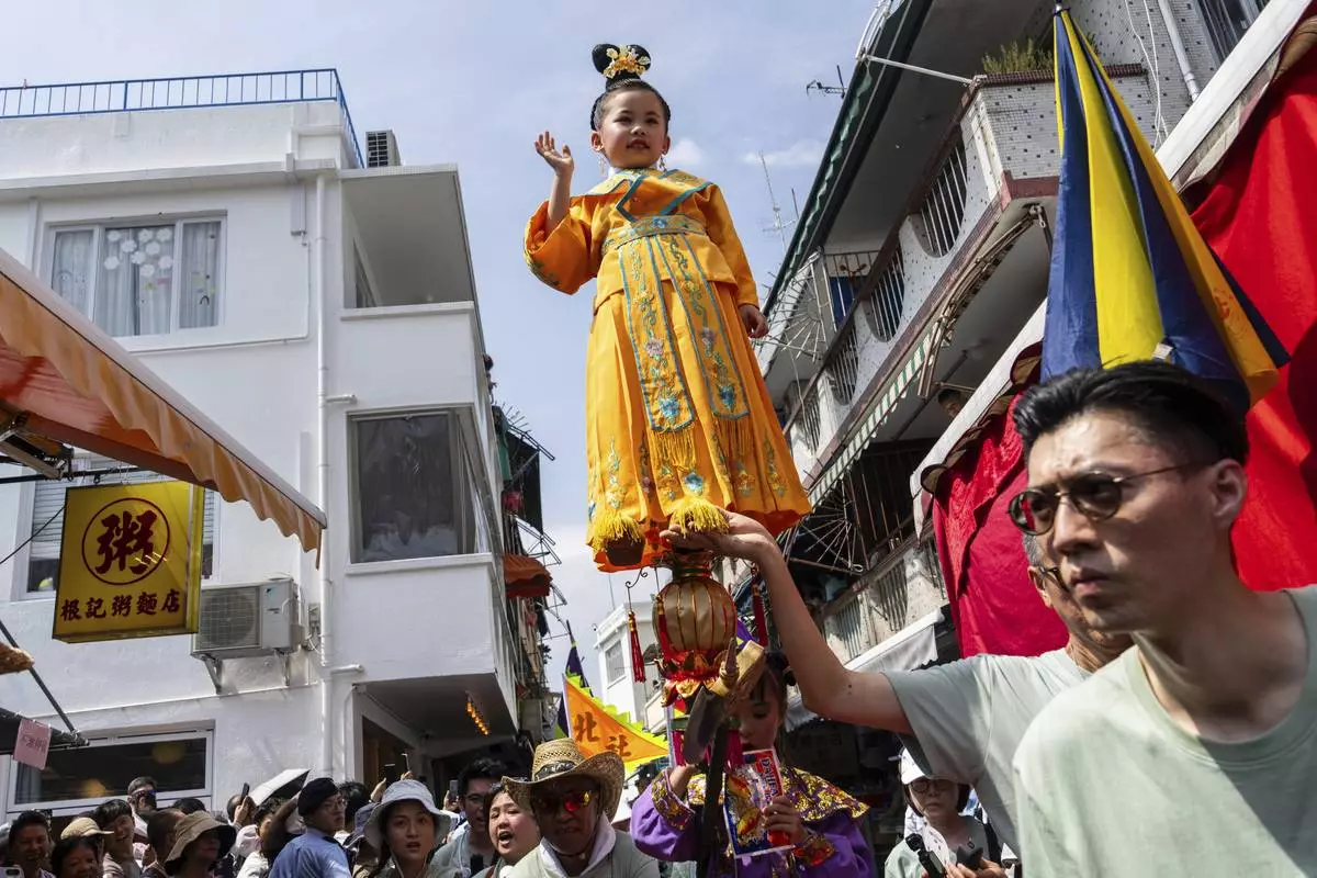 HONG KONG (AP) — Crowds flocked to the outlying Cheung Chau Island in Hong Kong to celebrate the Bun Festival, held each year in a century-old tradition to ward off evil and pray for peace and blessings.