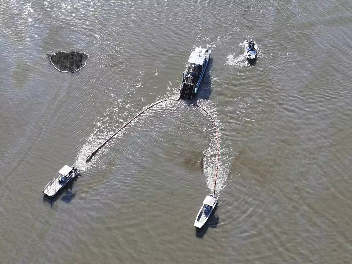 Authorities say they have deployed more than 20,000 feet (6 kilometers) of containment booms. The cause of the leak remains under investigation, officials said.