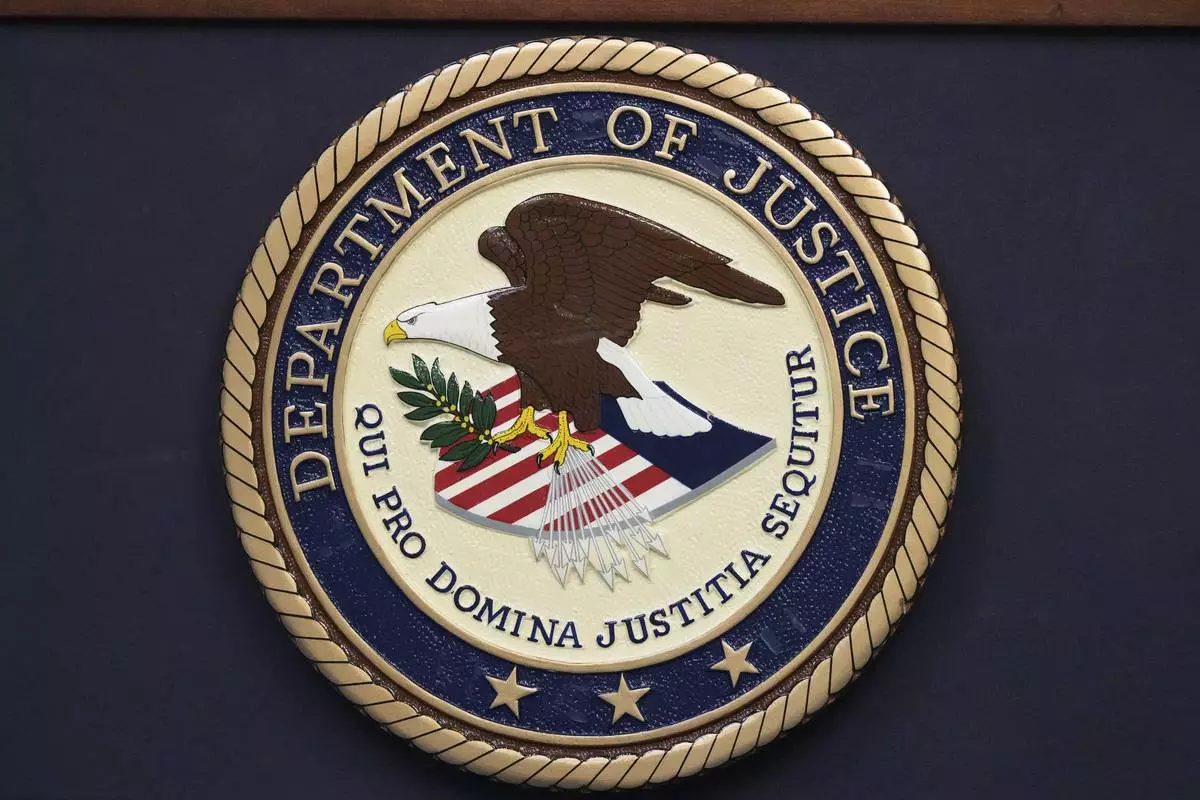FILE - The Department of Justice seal is seen during a news conference Thursday, Dec. 5, 2024, in Memphis, Tenn. (AP Photo/George Walker IV, File)