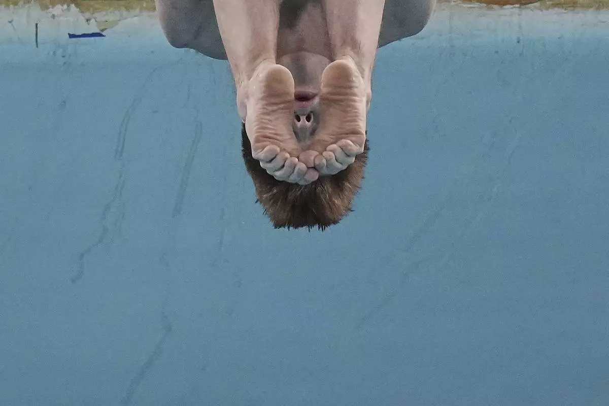 Oleksii Sereda of Ukraine competes in the Men's 10m Platform event for the Diving World Cup Super Final held at the Water Cube, in Beijing, Sunday, May 4, 2025. (AP Photo/Andy Wong)