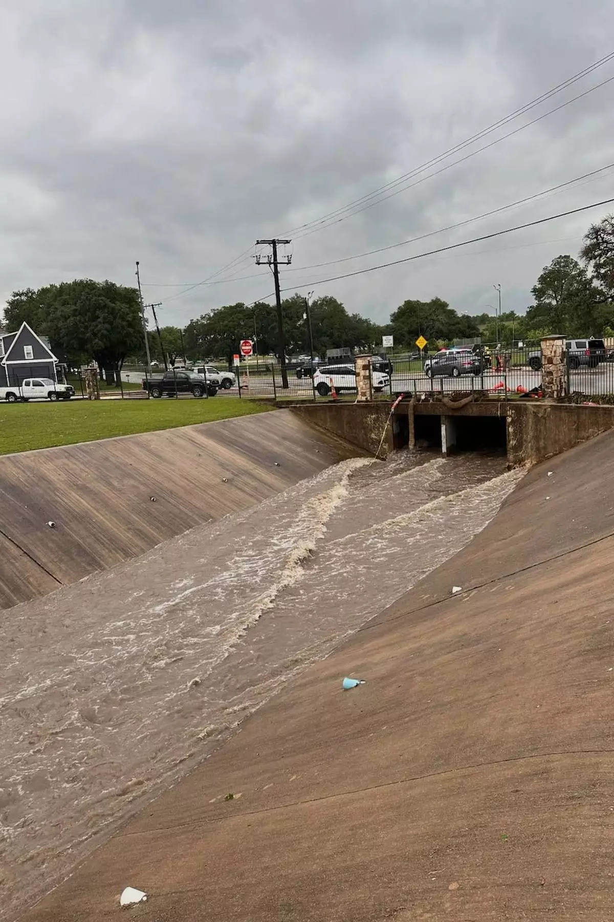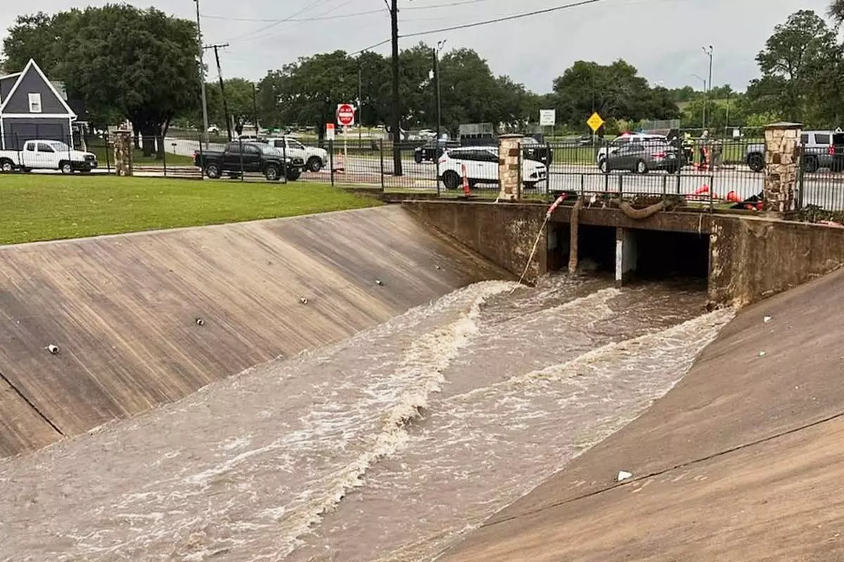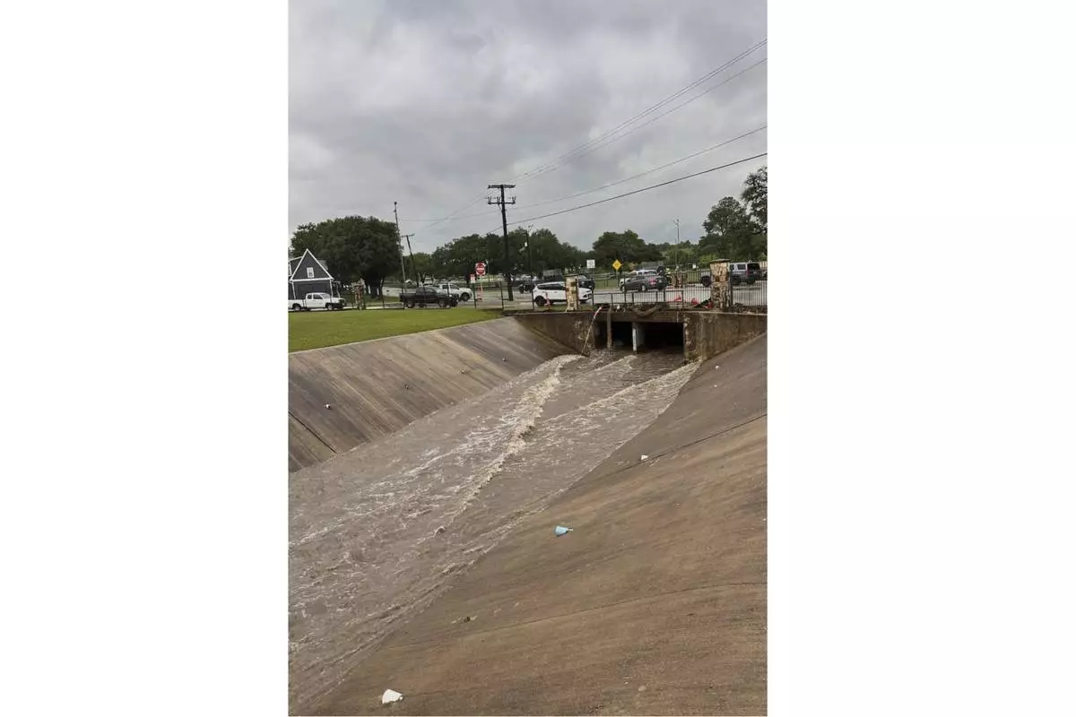 This photo provided by the City of Brenham shows a creek in Brenham, Texas, on Monday, May 5, 2025, where rescue crews searched for a missing 10-year-old girl who authorities say was swept away by rising waters. (Melinda Gordon/City of Brenham via AP)