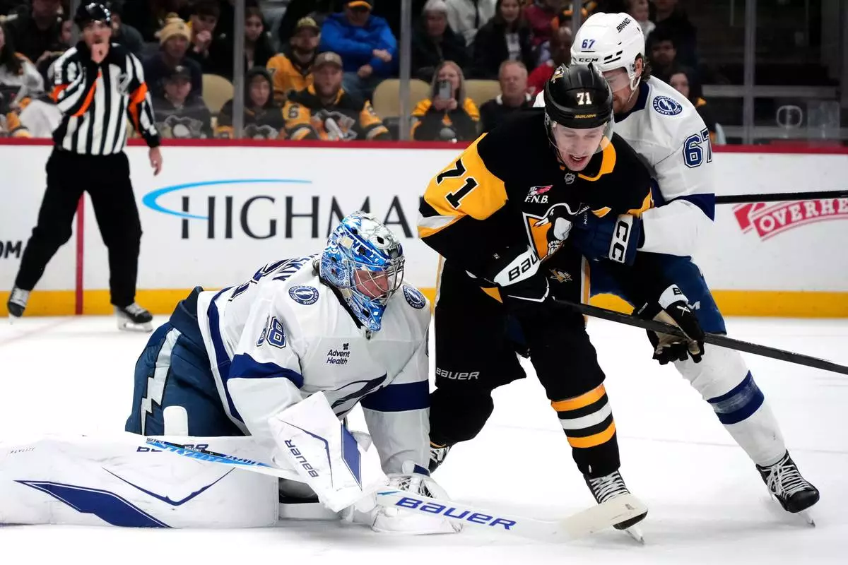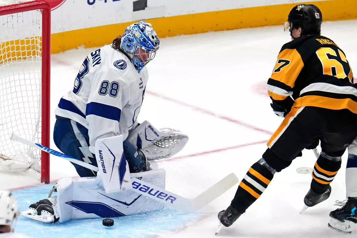 Gage Goncalves scored for Tampa Bay in the second round of the tiebreaker, and Egor Chinakov tied it for Pittsburgh on their attempt in the third round. Kucherov then won it for the Lightning.