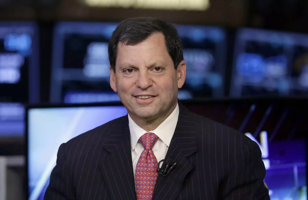 FILE- First Data Corp. Chairman & CEO Frank Bisignano is interviewed on the floor of the New York Stock Exchange, Oct. 15, 2015. (AP Photo/Richard Drew, File)