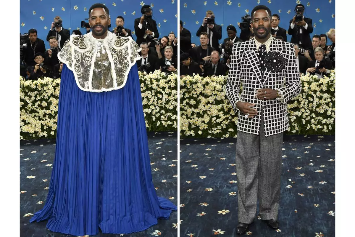 This combination photo shows Colman Domingo at The Metropolitan Museum of Art's Costume Institute benefit gala on May 5, 2025, in New York. (Photo by Evan Agostini/Invision/AP)