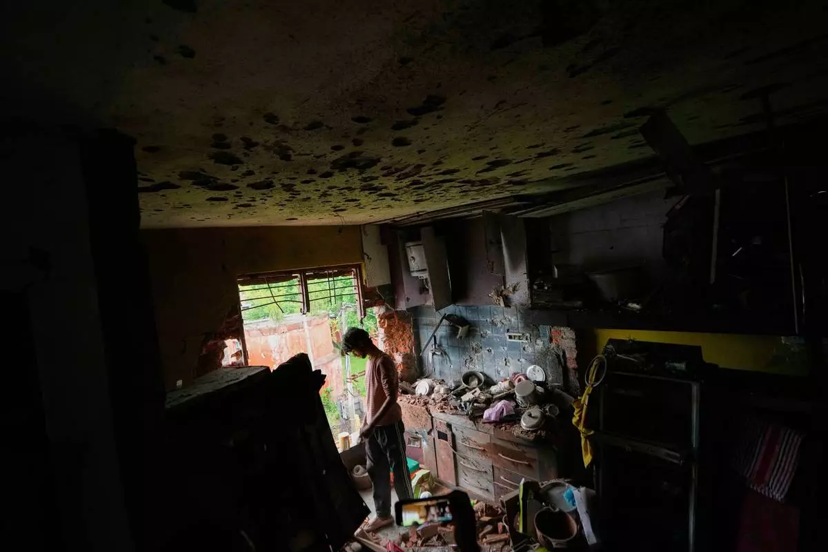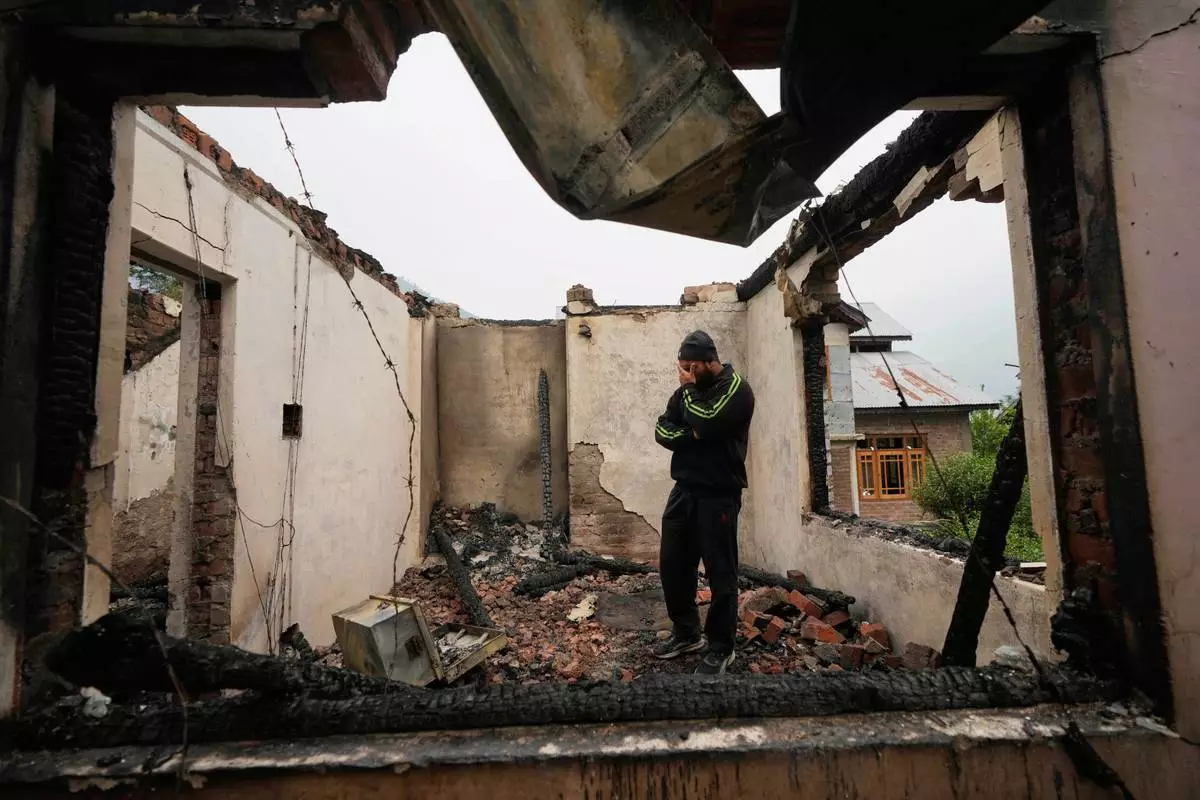 A resident inspects his house damaged by Pakistani artillery shelling in Poonch, along the Line of Control, Indian controlled Kashmir, Thursday, May 8, 2025. (AP Photo/Channi Anand)