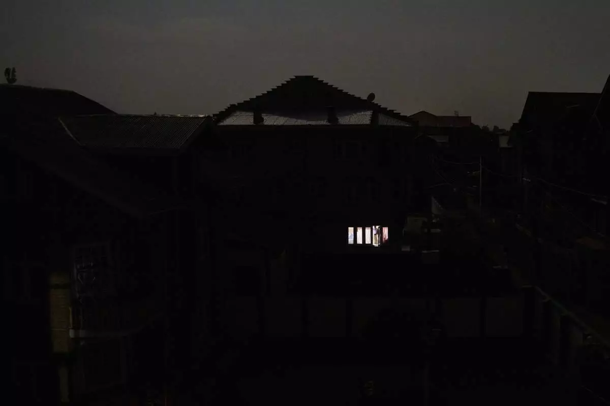 A Kashmiri man looks out from the window of his house during blackout after the residents of the Srinagar reported hearing explosions in Srinagar, Indian controlled Kashmir, Saturday, May 10, 2025.(AP Photo/Dar Yasin)