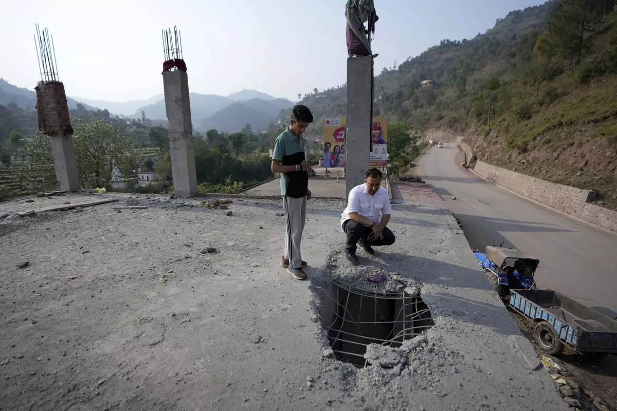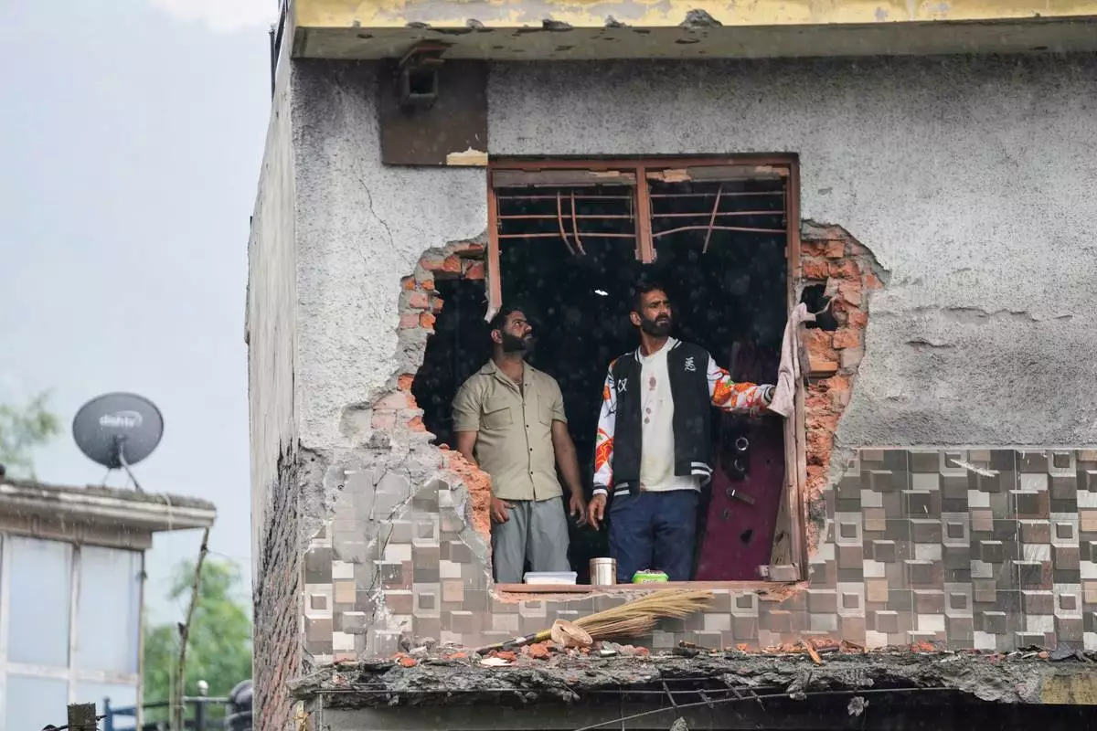 Residents inspect a house damaged by Pakistani artillery shelling in Poonch, along the Line of Control, Indian controlled Kashmir, Thursday, May 8, 2025. (AP Photo/Channi Anand)