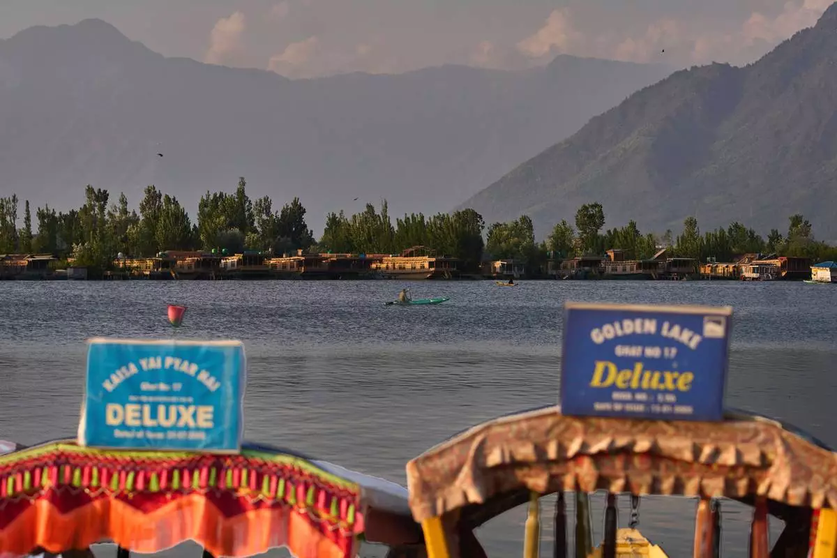 A Kashmiri man rows his wooden boat on his way back home on Dal Lake in Srinagar, in Indian controlled Kashmir, Saturday, May 10, 2025.(AP Photo/Dar Yasin)