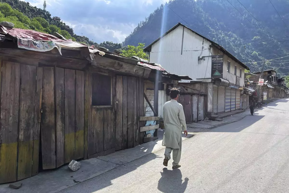 Local residents walk through a market closed due to ongoing military tension between Pakistan and India, in Jura, in Neelum Vallery, a district of Pakistan's administered Kashmir, Saturday, May 10, 2025. (AP Photo/M.D. Mughal)