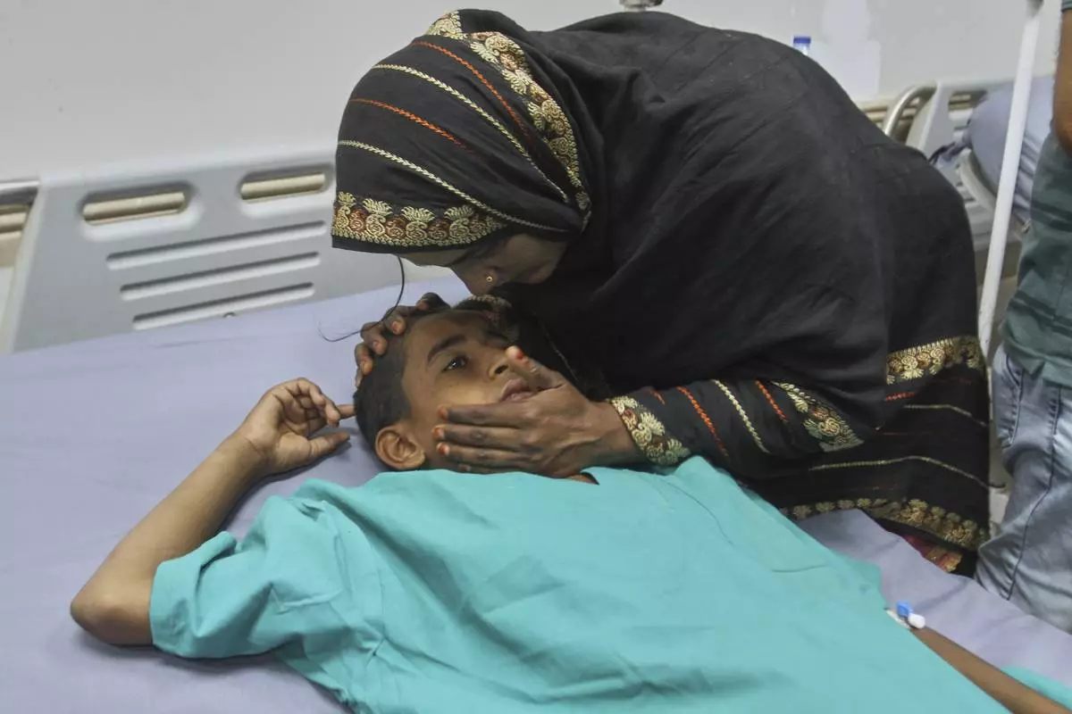 A mother comforts of her child injured in an Indian missile attack, at a hospital in Bahawalpur, Pakistan's Punjab province, Wednesday, May 7, 2025. (AP Photo/Asim Tanveer)