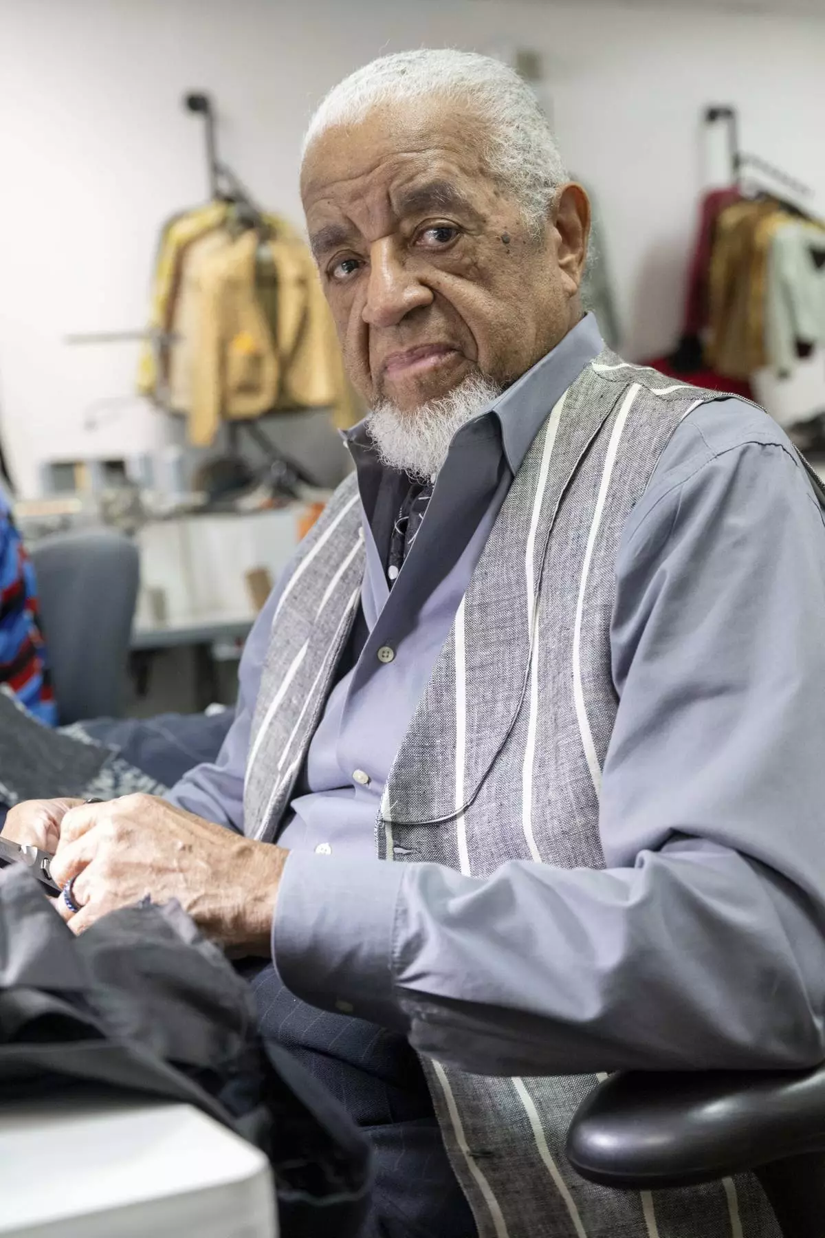 Master tailor, Jim "Gentleman Jim" McFarland, poses for a portrait on Friday, May 2, 2025, in Atlanta. (Photo by Paul R. Giunta/Invision/AP)
