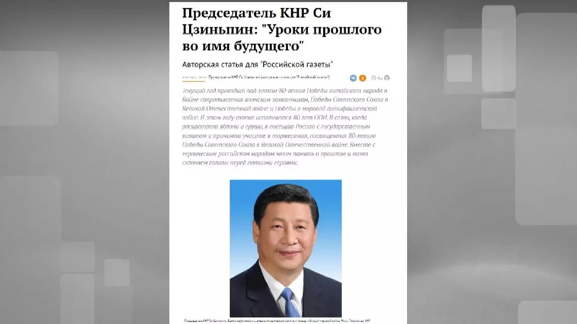 Noting that this year marks the 80th anniversary of the victories of the Chinese People's War of Resistance Against Japanese Aggression, the Soviet Union's Great Patriotic War and the World Anti-Fascist War, as well as the founding of the United Nations, Xi said that together with the heroic Russian people, he will honor the past and pay tribute to the martyrs.