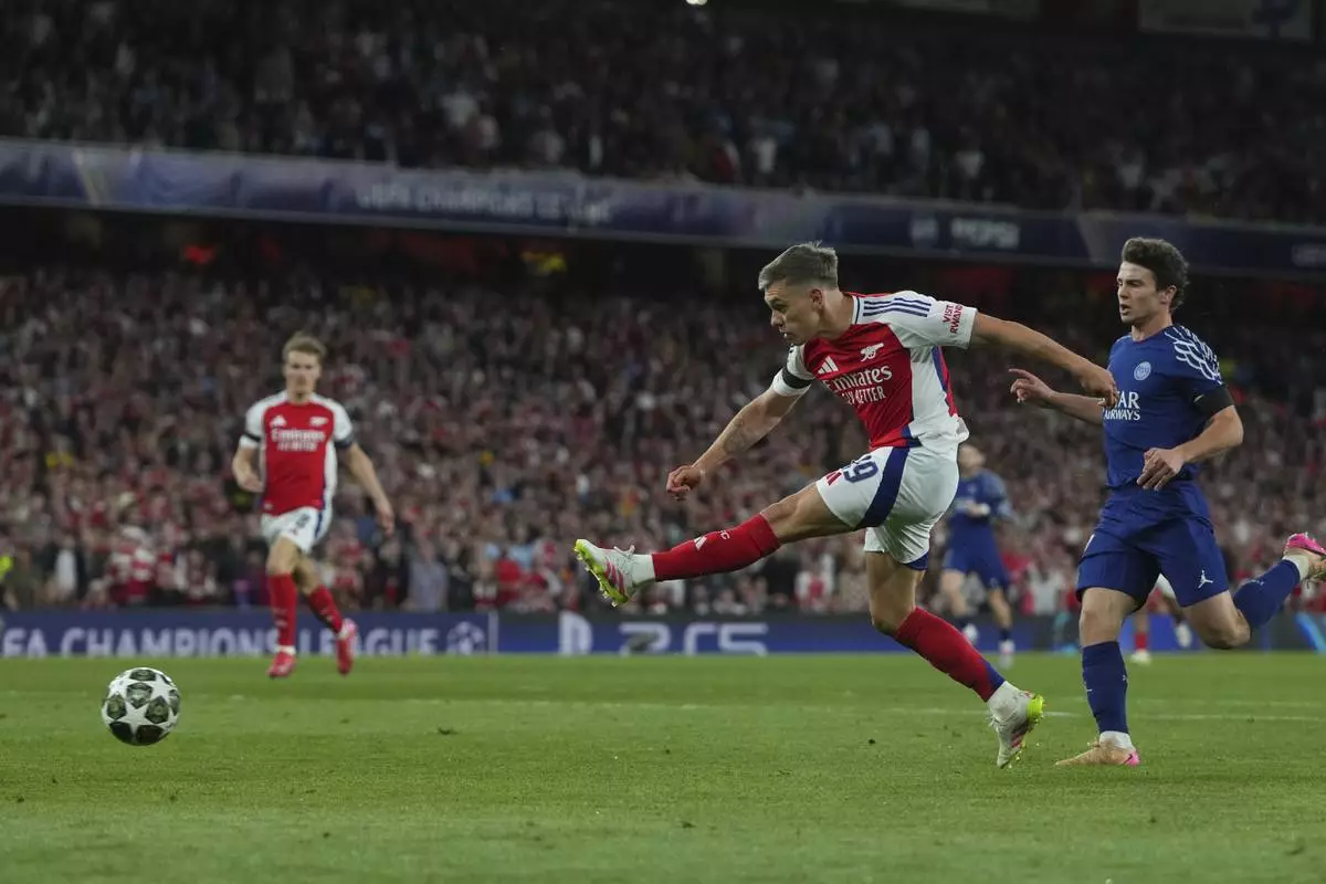 Arsenal overwhelmed PSG on the flanks, and went close again in the eighth minute when Martin Ødegaard unleashed a low drive from outside the area that forced Donnarumma into another fine save.