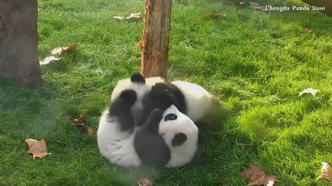 An earlier video captured two spirited giant panda cubs tussling over a tree trunk at the Chengdu Research Base of Giant Panda Breeding in southwest China's Sichuan Province.