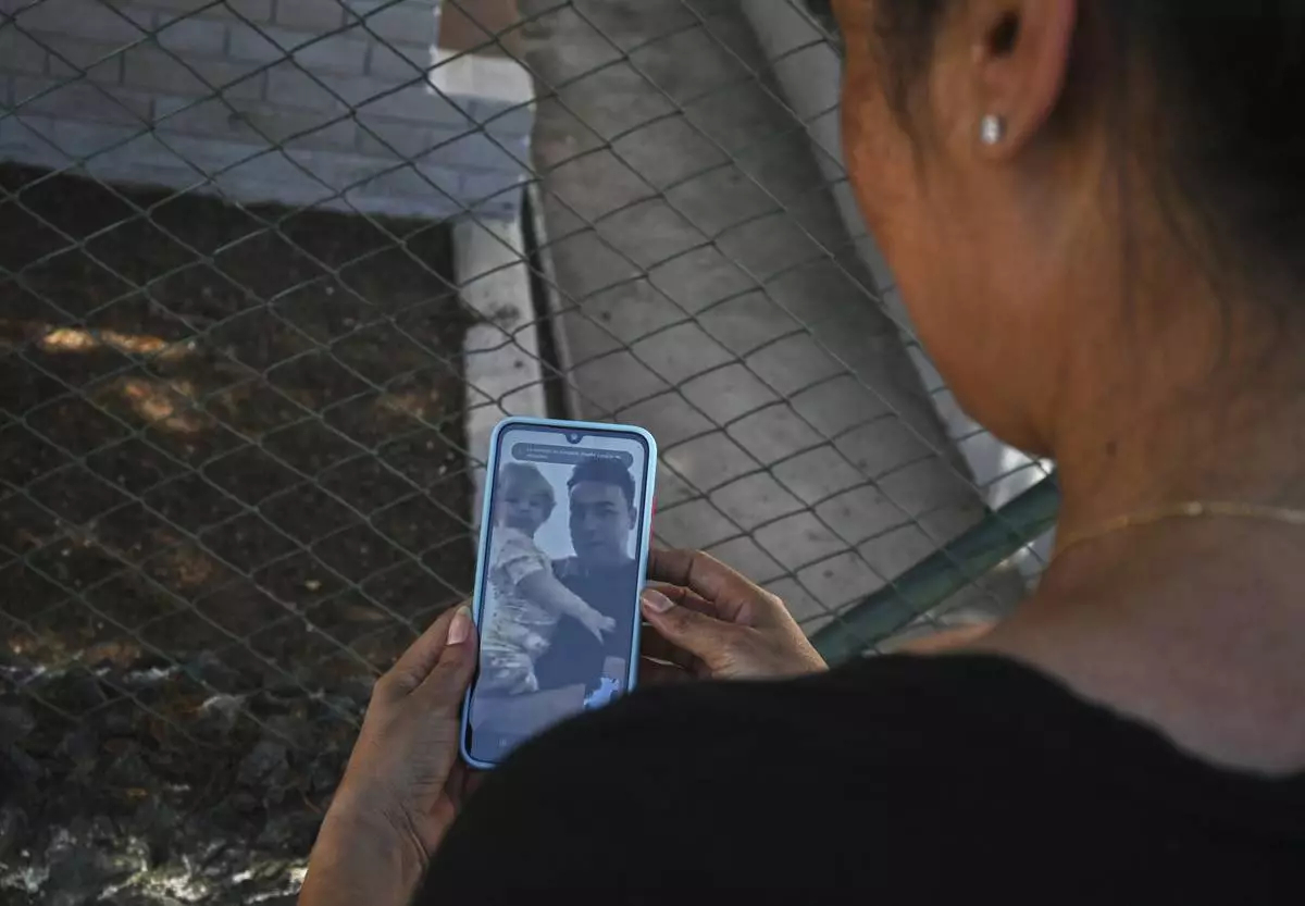 Heidy Sánchez, who was deported from the US to Cuba, video chats her daughter and husband, a US citizen, from her home in Havana, Tuesday, May 6, 2025. (AP Photo/Jorge Luis Baños)
