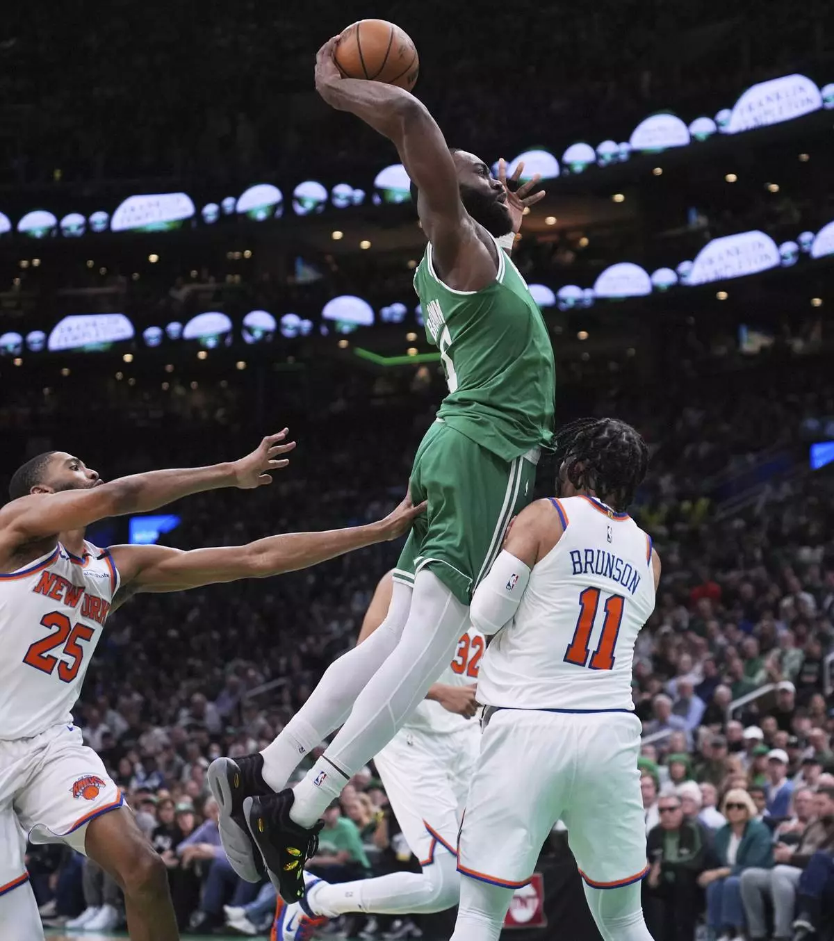 New York cut it to 86-82 on a floater by Hart before Towns' three-point play cut it to 86-85. Tatum missed a jumper, and Brunson made an 18-footer to put New York in front.