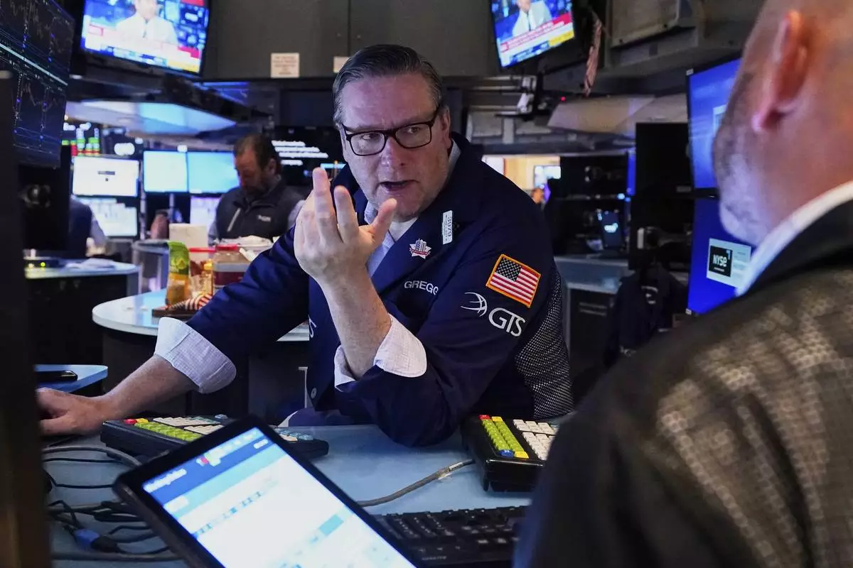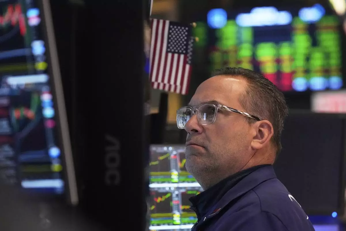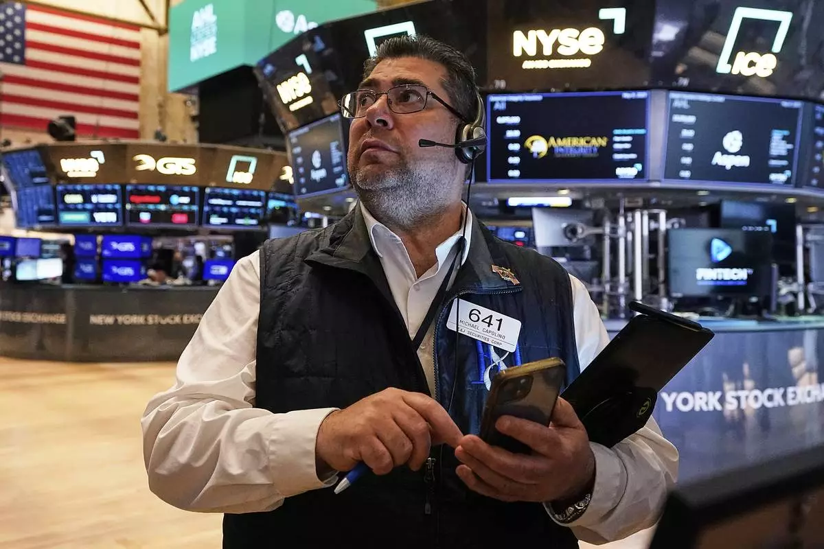 Specialist Anthony Matesic works at his post on the floor of the New York Stock Exchange, Wednesday, May 7, 2025. (AP Photo/Richard Drew)