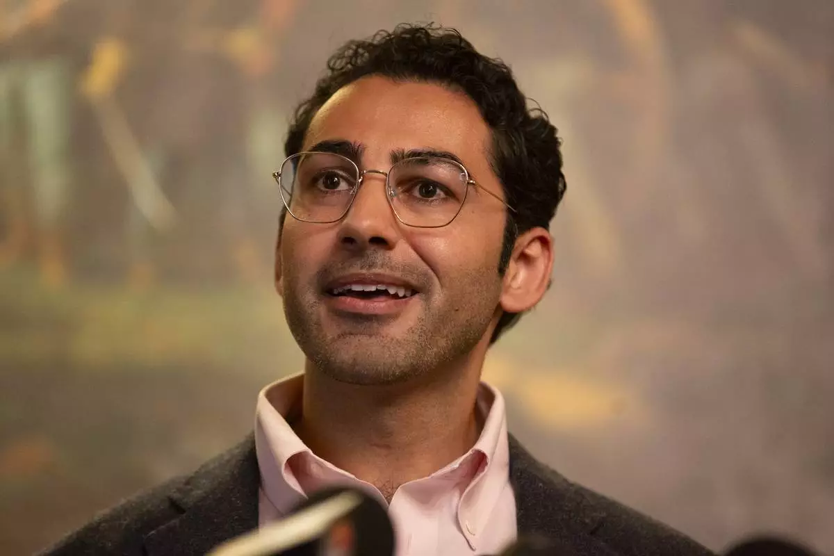 Mohsen Mahdawi speaks during a press conference announcing the launch of the Vermont Immigration Legal Defense Fund in the Cedar Creek Reception Room at the Vermont State House on Thursday, May 8, 2025, in Montpelier, Vt. (AP Photo/Alex Driehaus)