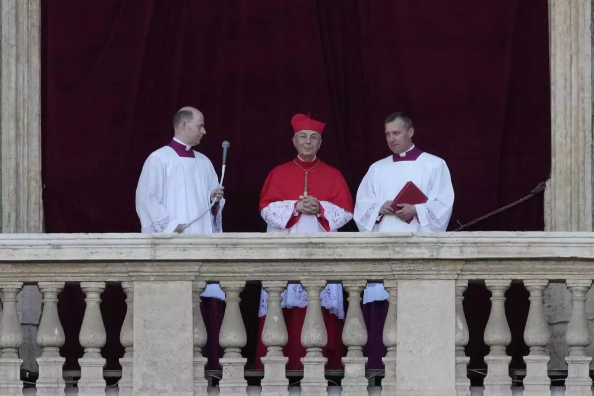 Cardinal Dominique Mamberti announces the election of Cardinal Robert F. Prevost as the 267th pope, choosing the name of Pope Leone XIV, at the Vatican, Thursday, May 8, 2025. (AP Photo/Bernat Armangue)
