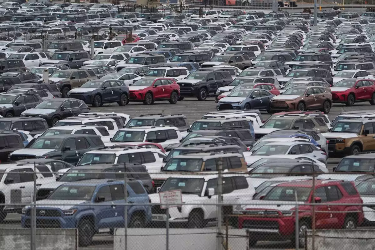 FILE - New Toyota vehicles are stored at the Toyota Logistics Service Inc., their most significant vehicle imports processing facility in North America, at the Port of Long Beach in Long Beach, Calif., Wednesday, March 26, 2025. (AP Photo/Damian Dovarganes)