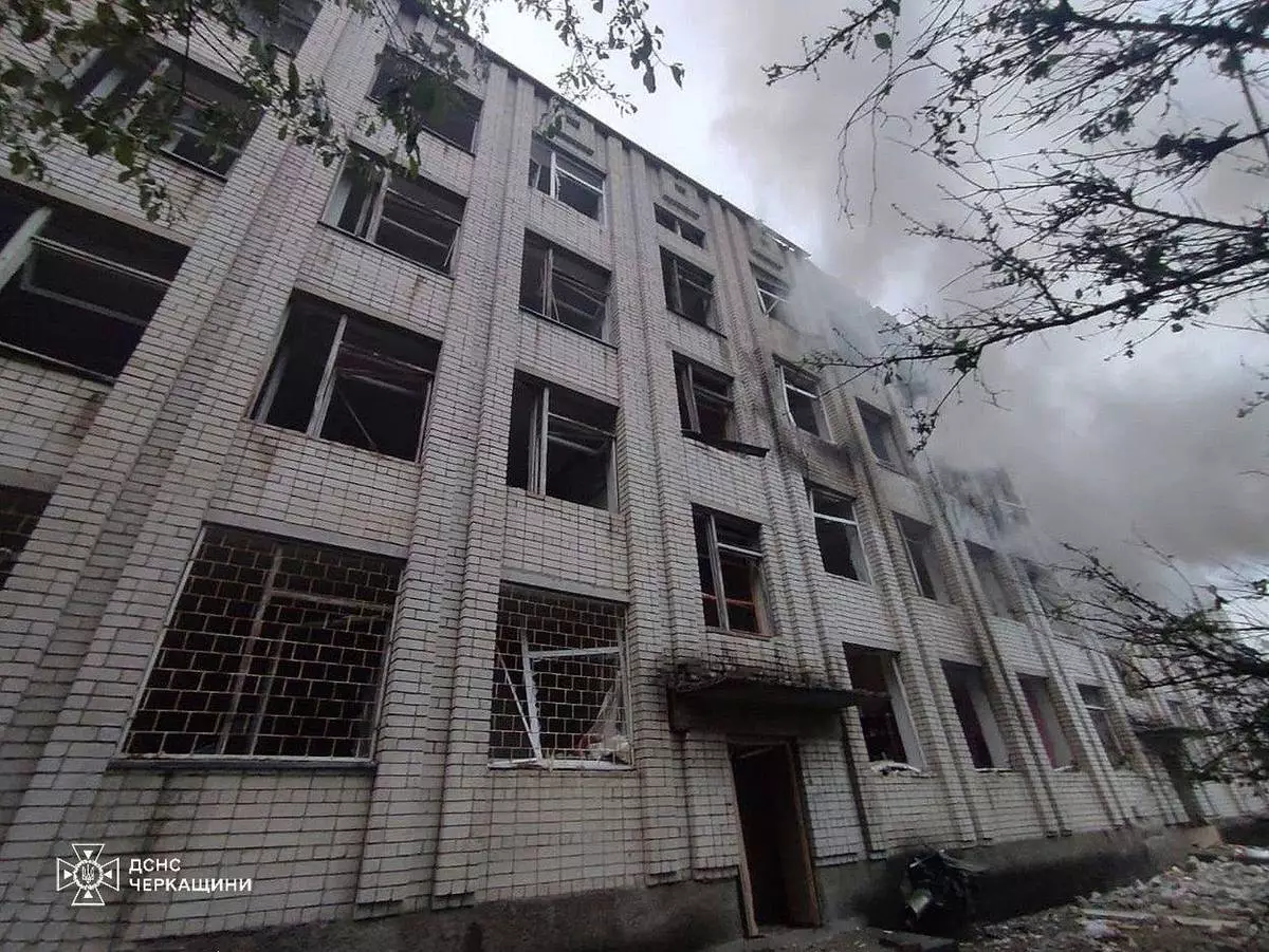 In this photo provided by the Ukrainian Emergency Services on May 7, 2025, smoke rises from a building damaged by a Russian strike in Uman, Ukraine. (Ukrainian Emergency Service via AP)