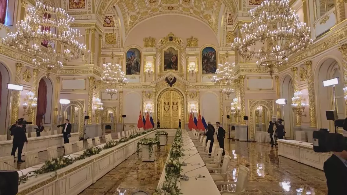 Chinese President Xi Jinping and Russian President Vladimir Putin are set to hold large-group talks in the Kremlin, Moscow on Thursday morning.