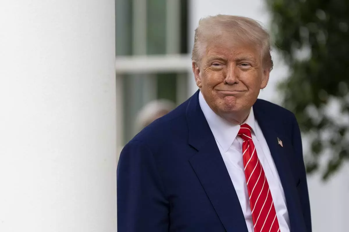 President Donald Trump speaks to reporters outside the West Wing of the White House, Thursday, May 8, 2025, in Washington. (AP Photo/Evan Vucci)