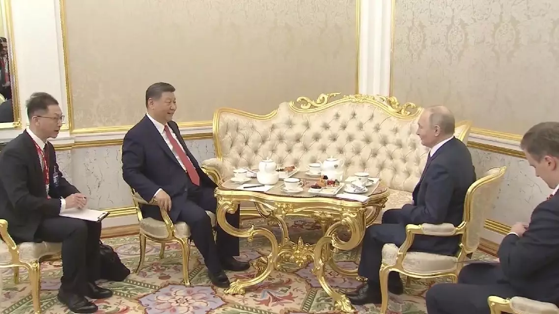 Chinese President Xi Jinping and Russian President Vladimir Putin had a tea chat at the Kremlin in Moscow, Russia, on Thursday afternoon.