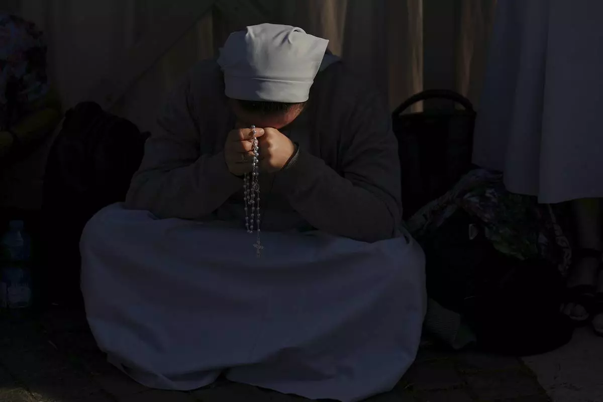 A nun prays at St. Peter's Basilica waiting for smoke to billow from the chimney of the Sistine Chapel where 133 cardinals are gathering on the second day of the conclave to elect a successor to late Pope Francis, at the Vatican, Thursday, May 8, 2025. (AP Photo/Francisco Seco)