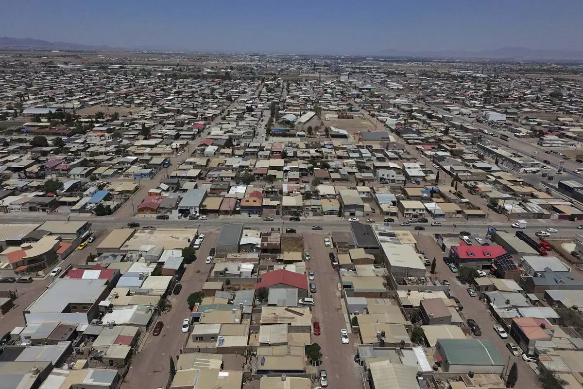 CORRECTS TO REMOVE THAT VIEW IS OF MENNONITE HOMES AND CROPS - An aerial view of Cuauhtemoc, Mexico, Thursday, May 1, 2025. (AP Photo/Martin Silva Rey)