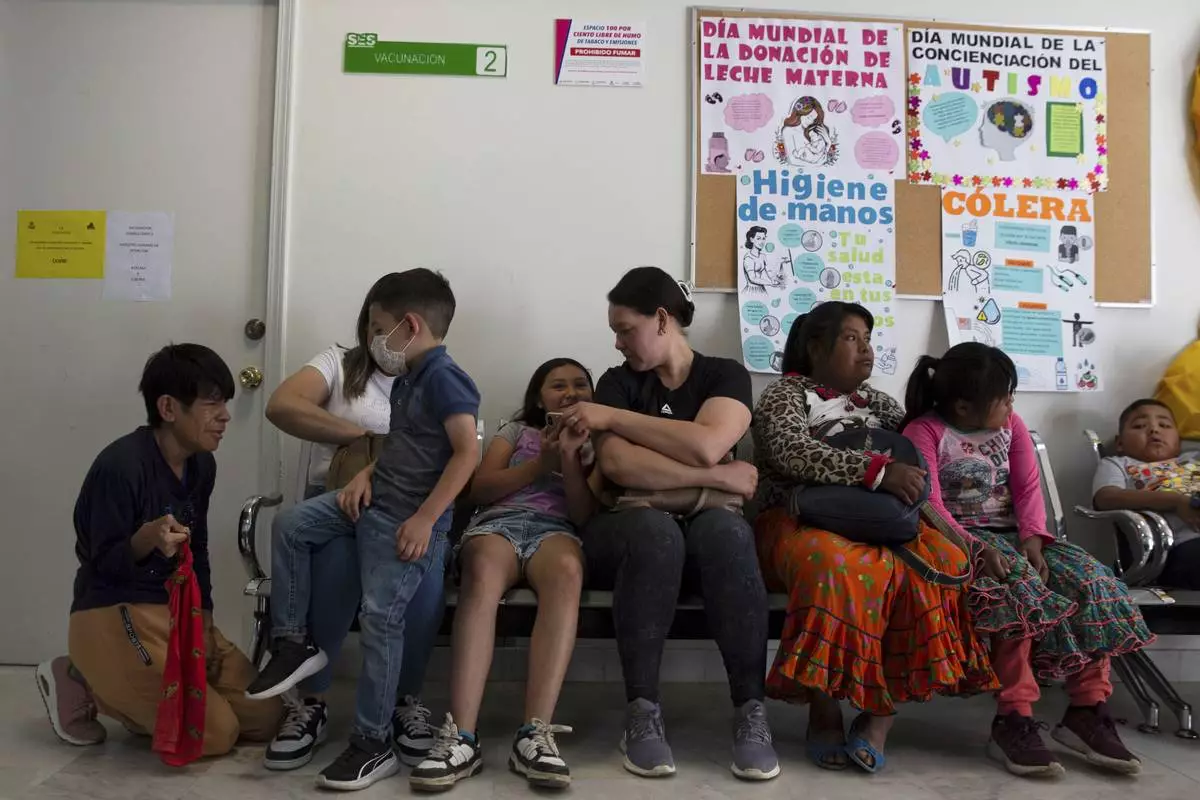 People wait to get vaccinated for measles at a health center in Cuauhtemoc, Chihuahua state, Mexico, Wednesday, April 30, 2025. (AP Photo/Megan Janetsky)