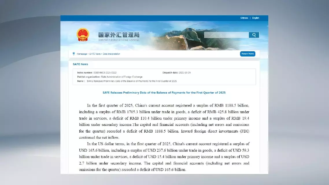 China reported a current account surplus of 165.6 billion U.S. dollars in the first quarter of 2025, according to data released Friday by the State Administration of Foreign Exchange.