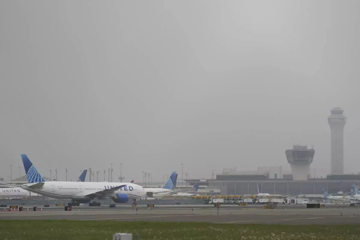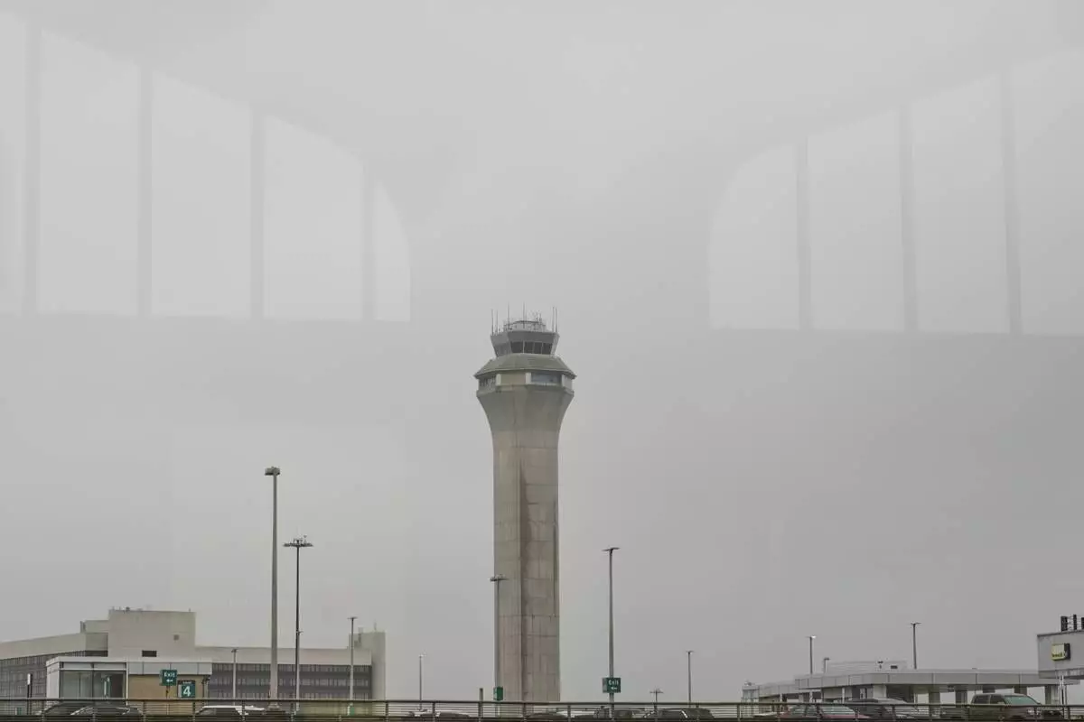 Fog covers planes and control towers at Newark Liberty International Airport in Newark, N.J., Monday, May 5, 2025. (AP Photo/Seth Wenig)