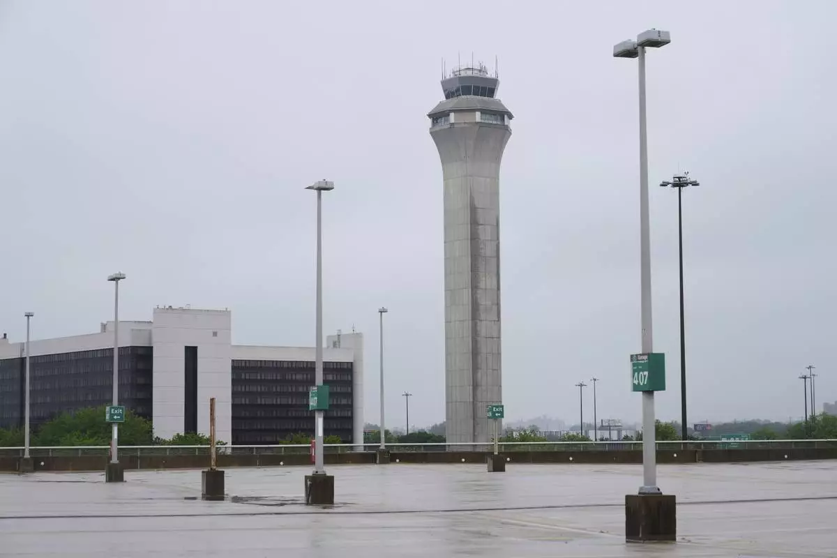 A control tower is seen at Newark Liberty International Airport in Newark, N.J., Monday, May 5, 2025. (AP Photo/Seth Wenig)