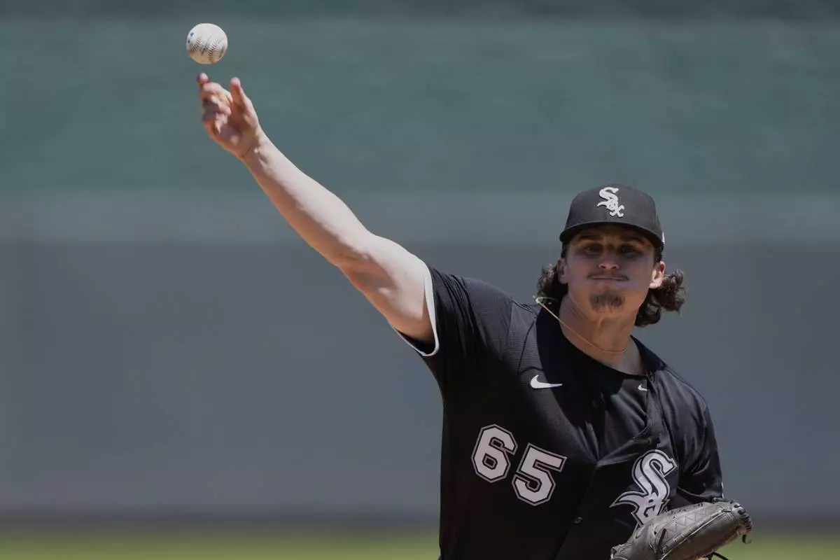 Chicago White Sox starting pitcher Davis Martin throws during the first inning of a baseball game against the Kansas City Royals, Thursday, May 8, 2025, in Kansas City, Mo. (AP Photo/Charlie Riedel)