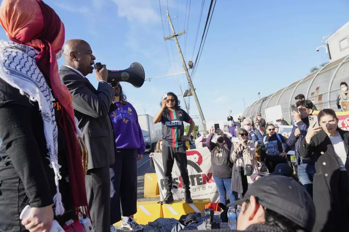 Newark Mayor Ras Baraka joins protesters outside of Delaney Hall, a recently re-opened immigration detention center, in Newark, N.J., Wednesday, May 7, 2025. (AP Photo/Seth Wenig)