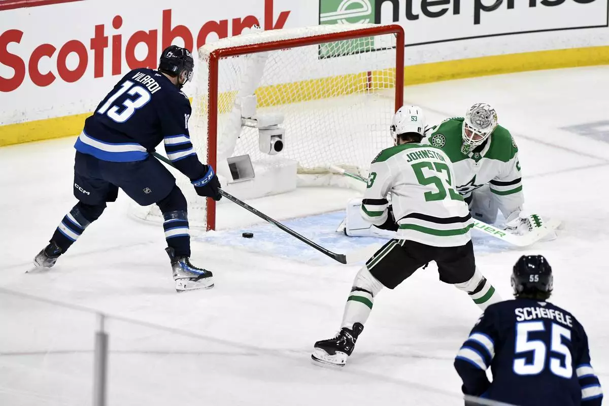 WINNIPEG, Manitoba (AP) — Connor Hellebuyck made 21 saves and the Winnipeg Jets beat the Dallas Stars 4-0 on Friday night in Game 2 to tie the Western Conference second-round series.