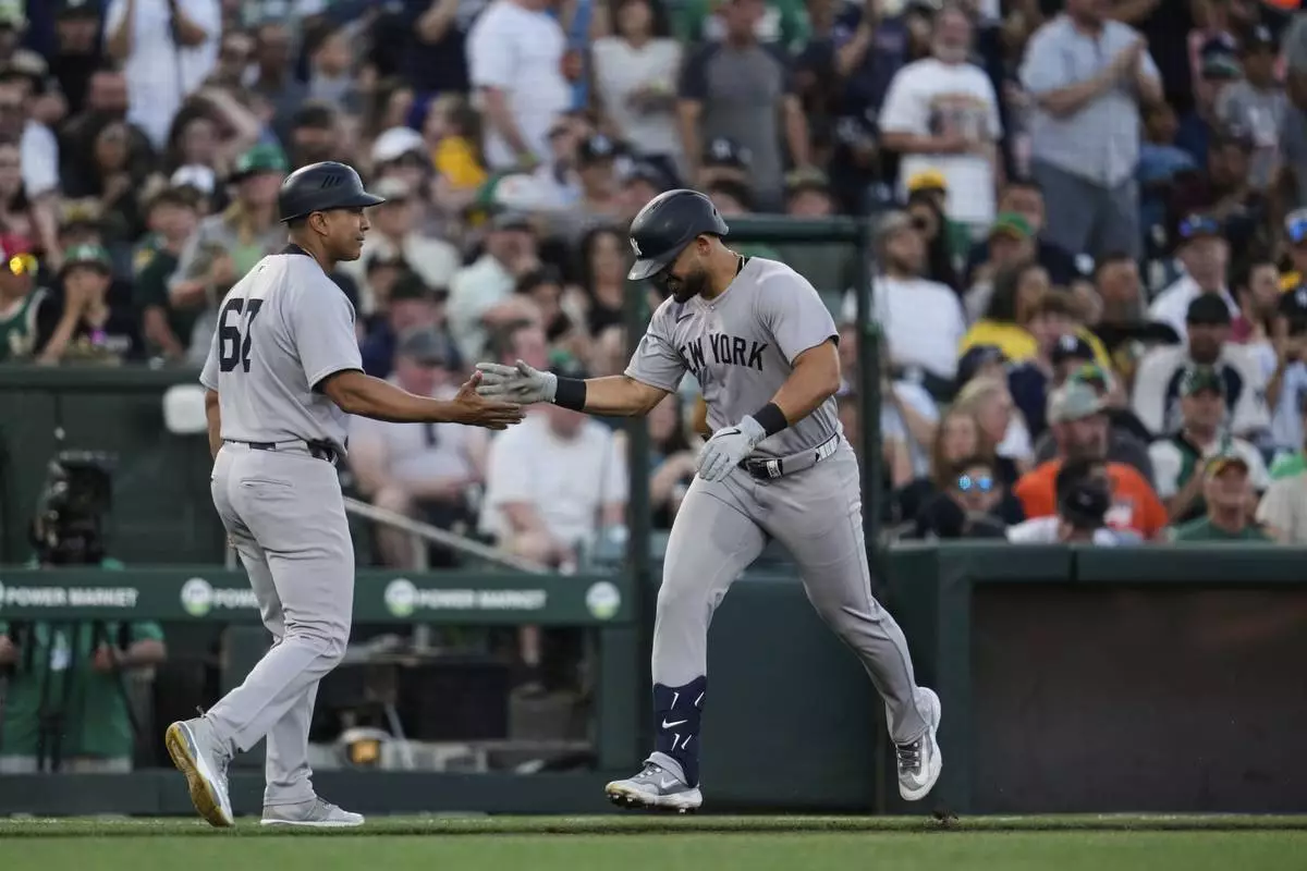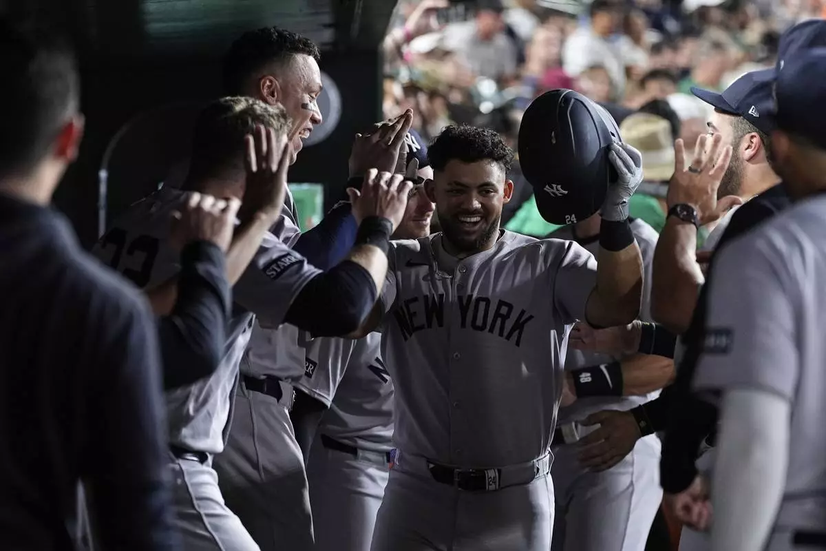 “Very impressive, manager Aaron Boone said. ”Just really, really quality at-bats by him. He’s capable of things like that. Obviously the two lefty kind of similar, high kind of moonshot no-doubters. And the right-handed ball was absolutely scorched."