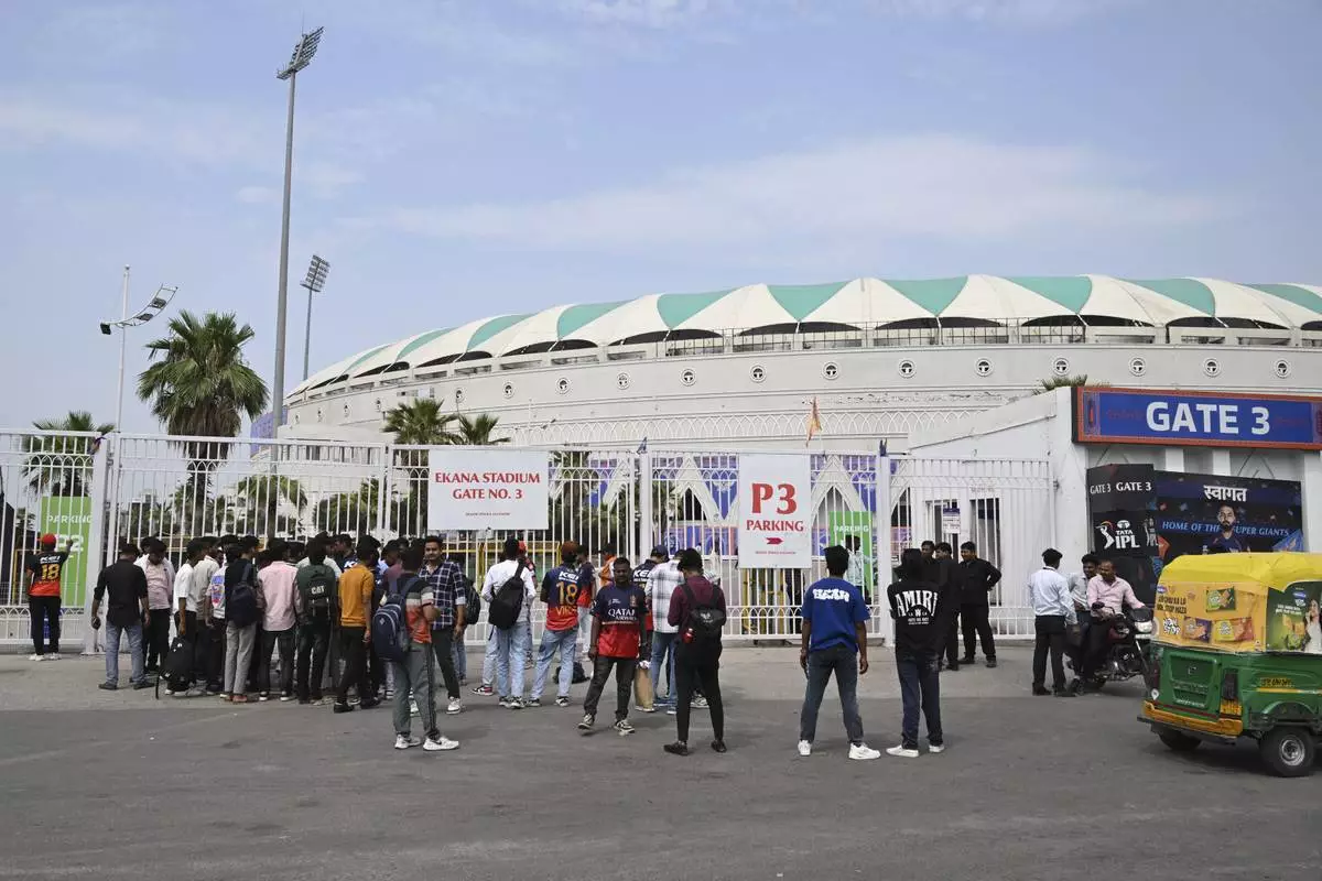 Fans gather outside Atal Bihari Vajpayee Ekana Cricket Stadium after organizers suspended the Indian Premier League for one week following the escalating military tensions with Pakistan, in Lucknow, India, Friday, May 9, 2025. (AP Photo)