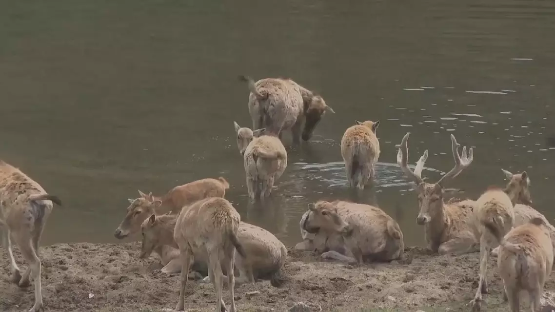 The area where the milu deer live covers about 10,000 mu (about 666 hectares) of grasslands, forests, and streams at an average altitude of 1,100 meters. This diverse environment, particularly the warm, humid wetlands and lakes, has become a key gathering spot for the animals.
