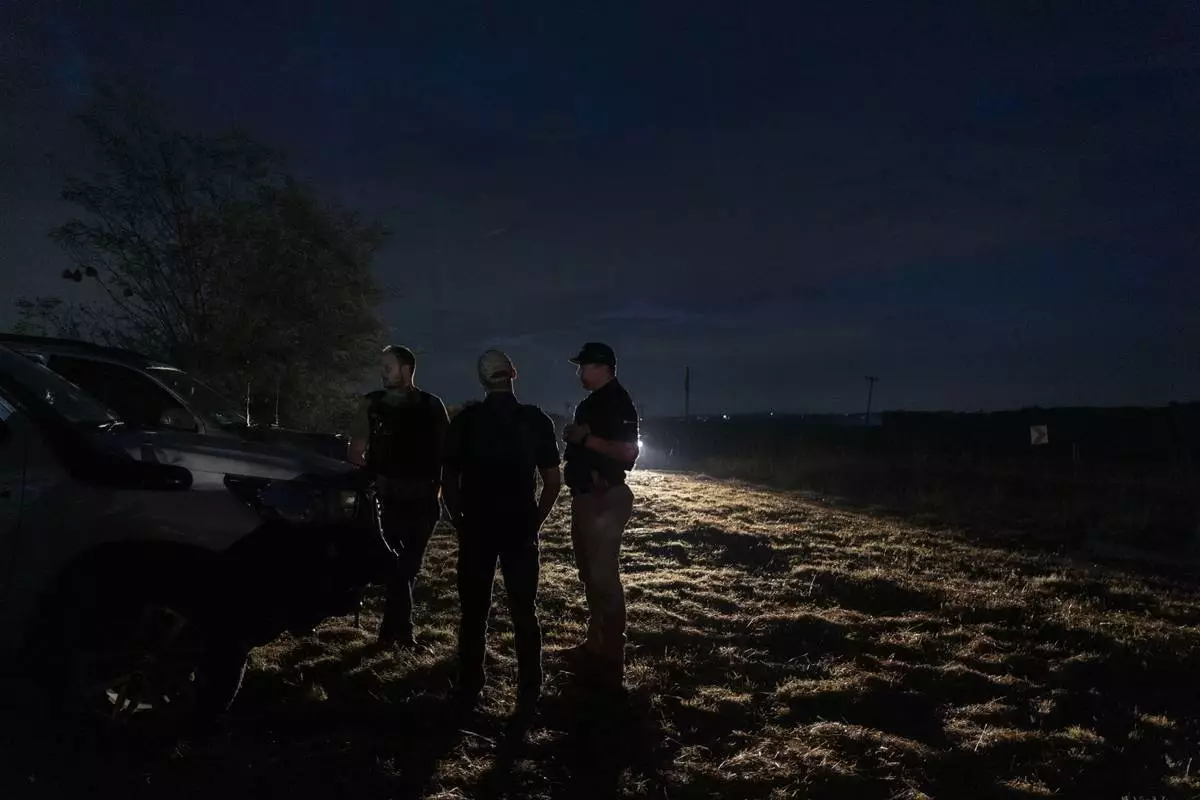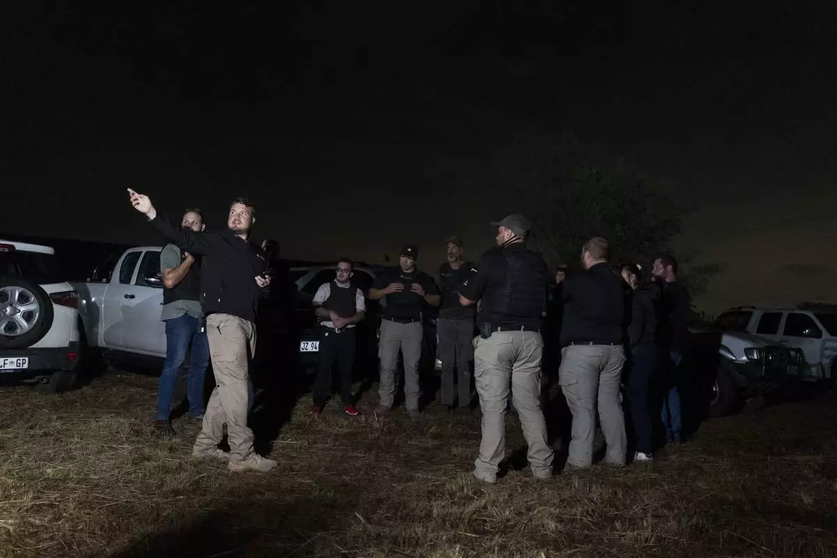 Members of Afriforum, a neighborhood and farm security group, assemble before a patrol in Bashewa area in the east of Pretoria, South Africa, Thursday, March 29, 2025. (AP Photo/Alet Pretorius)