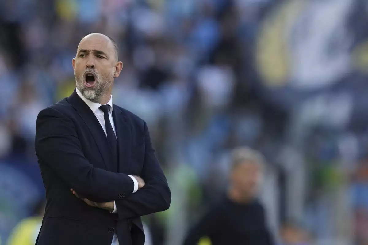 Juventus' head coach Igor Tudor during the Serie A soccer match between Lazio and Juventus at Rome's Olympic stadium, Saturday, May 10, 2025. (Alfredo Falcone/LaPresse via AP)
