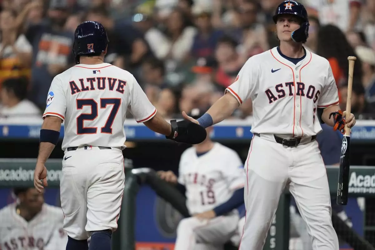 Altuve was replaced by pinch-hitter Brendan Rodgers with one out in the third inning and Houston trailing 12-1.