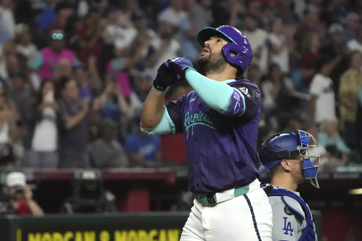 PHOENIX (AP) — Corbin Burnes threw seven scoreless innings, Eugenio Suarez hit his 12th homer of the season and the Arizona Diamondbacks beat the Los Angeles Dodgers 3-0 on Saturday night.