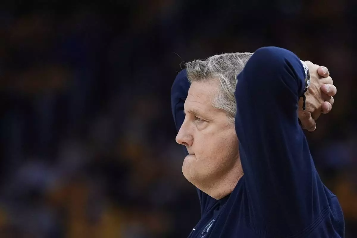 Minnesota Timberwolves head coach Chris Finch watches during the first half of Game 3 of an NBA basketball second-round playoff series against the Golden State Warriors, Saturday, May 10, 2025, in San Francisco. (AP Photo/Godofredo A. Vásquez)