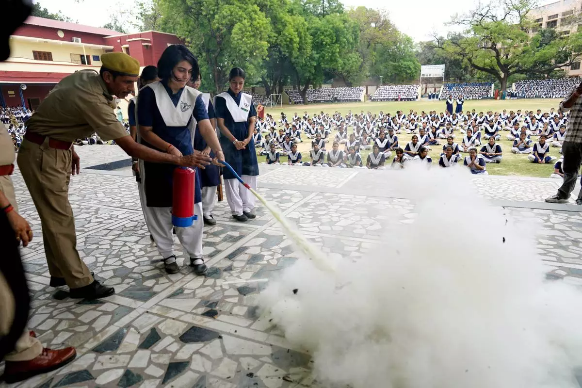 Firefighters carry out a mock drill to train civilians and security personnel to respond in case of an attack, old quarters of New Delhi, India, Saturday, May 10, 2025. (AP Photo/Karma Bhutia)