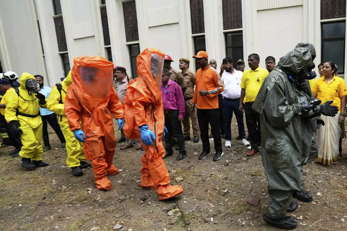 Civil Defense Services, National Disaster Response Force NDRF and Mumbai Fire Brigade workers take part in a mock drill in Mumbai, India, Wednesday, May 7, 2025, amid rising fears of wider conflict following India's strikes in Pakistan. (AP Photo/Rajanish Kakade)