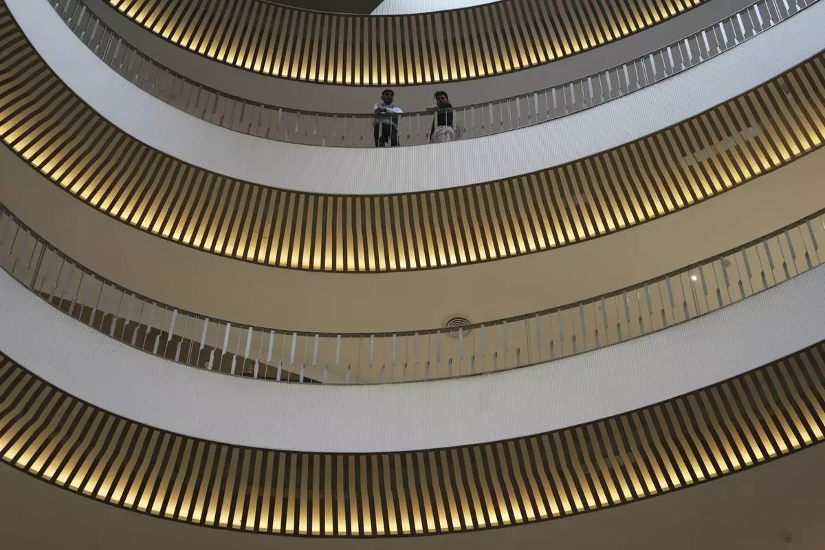 People watch a security mock drill at a mall in Ahmedabad, India, Wednesday, May 7, 2025, amid rising fears of wider conflict following India's strikes in Pakistan. (AP Photo/Ajit Solanki)